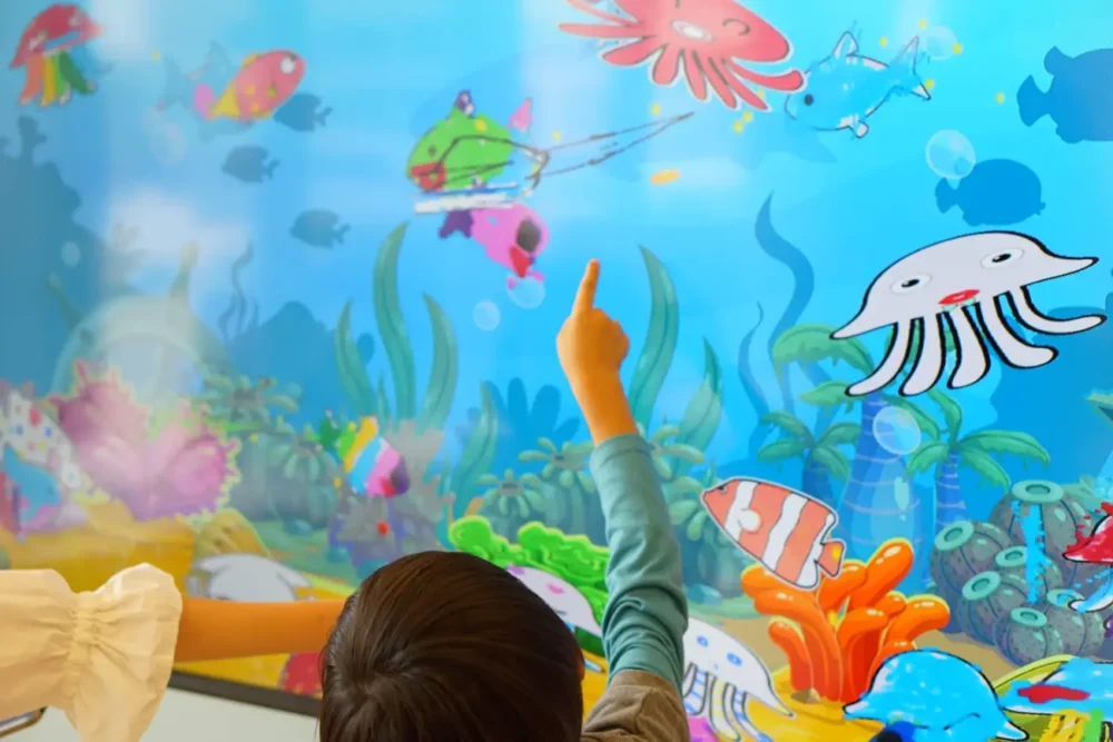 젖은 물고기가 화면 속에서 헤엄치는 신기하고 즐거운 체험 이벤트!