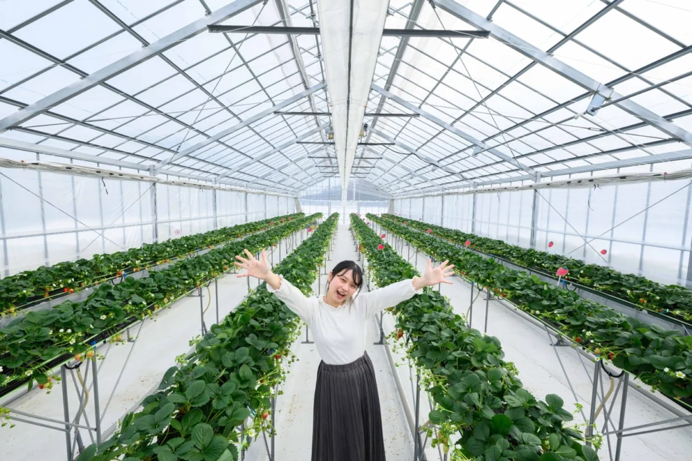 부지에 설치한 전천후형의 비닐하우스 6동(총면적 약 2,470m2)로, 딸기 사냥을 즐길 수 있는 딸기 농원입니다.