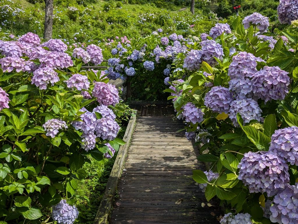 6월부터 7월경의 원내는 인스타그램 약 2ha의 수국원에 약 100 품종의 수국이 피어납니다.