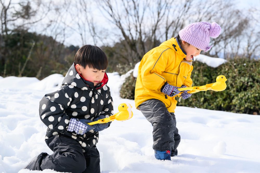 雪玉メーカーで作った雪玉などで雪合戦も楽しめます。