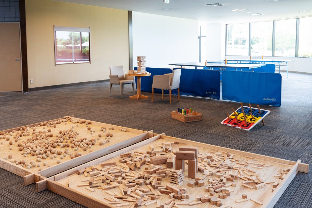 室内では積み木、ジェンガ、輪投げ、卓球(1回30分、フロントにて予約が必要)などこちらもご自由にお楽しみいただけます。