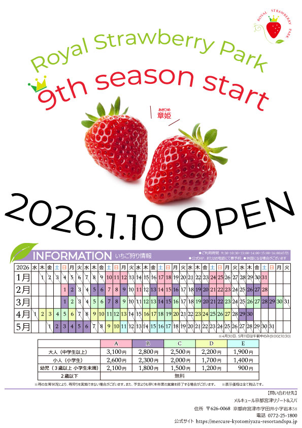 【2026年いちご狩り開園日】1月10日(土)~5月17日(日)