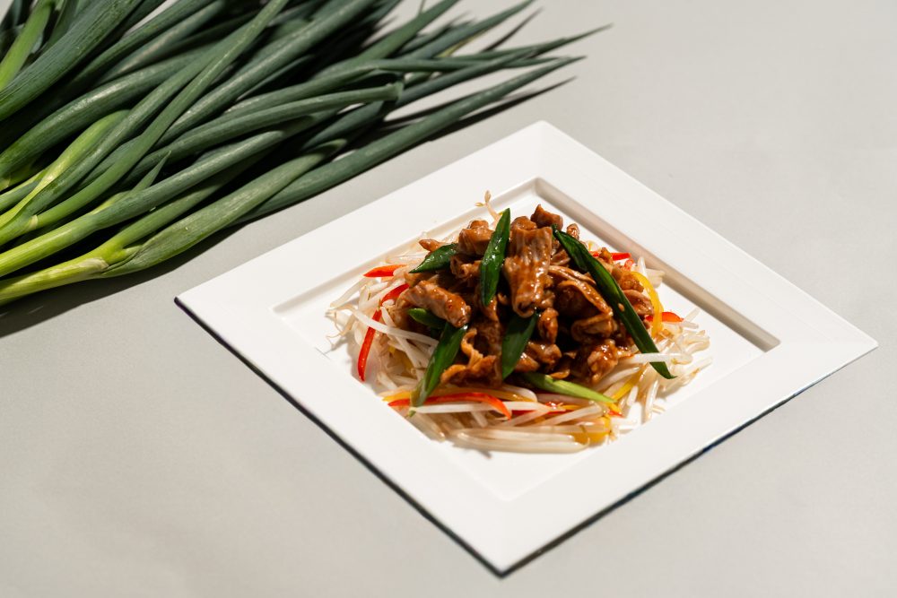 將京丹波高原豬的新鮮內臟香辣炒,充分混合了甜味豐富的九條蔥。